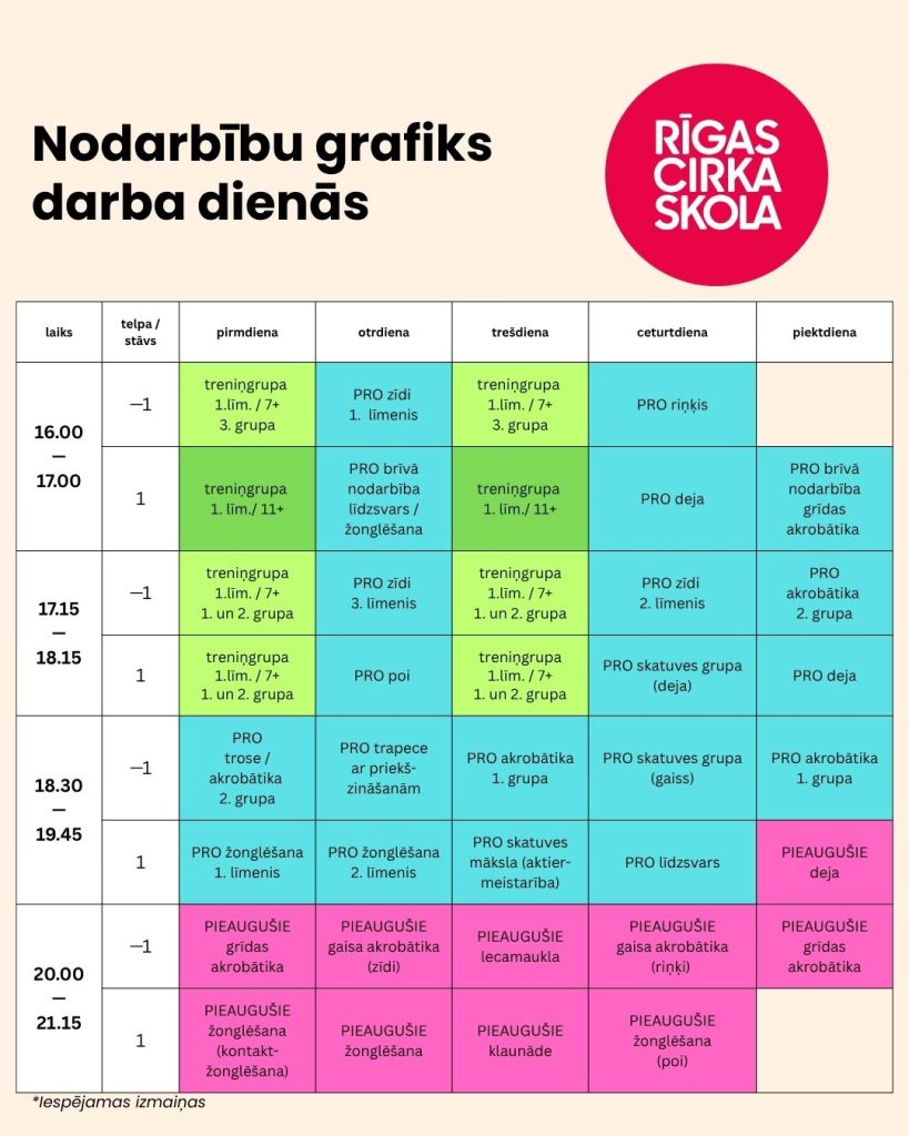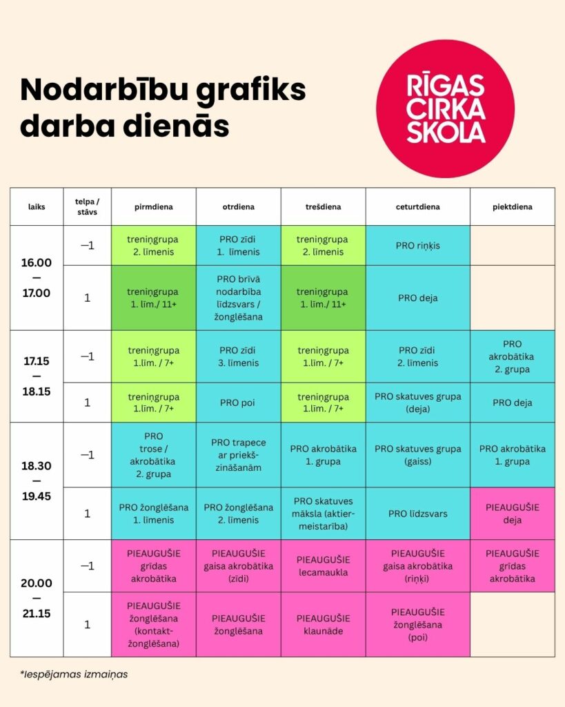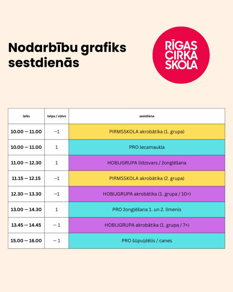 Rīgas cirka skola piedāvā regulāras brīvā laika nodarbības kā bērniem un pusaudžiem, tā pieaugušajiem un ģimenēm. Mūsuprāt, tas ir lielisks veids, kā pavadīt brīvo laiku, attīstot ķermeni, domāšanu un arī komunikācijas spējas.