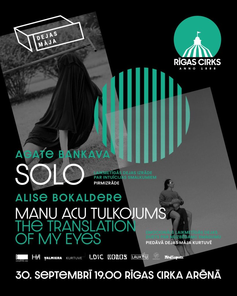 Divu laikmetīgās dejas izrāžu vakars Kad: 30. septembrī, plkst. 19.00 Kur: Rīgas cirka arēna, Merķela iela 4, Rīga Ieteicamais vecums: 12+ Izrādes pieejamība: cilvēkiem ratiņkrēslā, cilvēkiem ar dzirdes traucējumiem, nedzirdīgajiem “Solo” Agate Bankava Intuitīva un sajūtās balstīta dejas izrāde, aicinot skatītāju kļūt par notikuma daļu. Agate Bankava ir laikmetīgās dejas māksliniece. Dejojusi TDA “Uguntiņa”, absolvējusi…